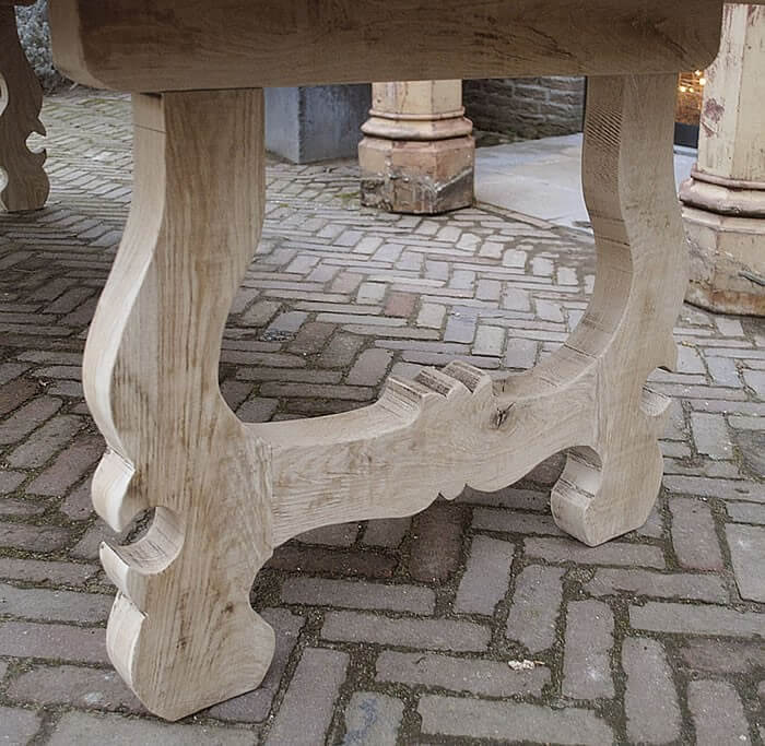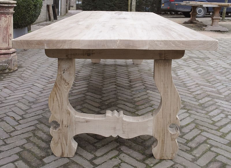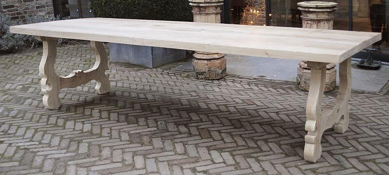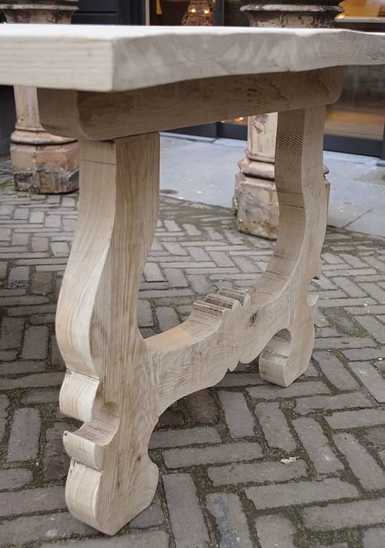 This rustic dinging table is designed by ourselves and handcrafted in our own workshop. The table top consists of atleast 6 planks of approximately 4.5 cm thick oakwood.