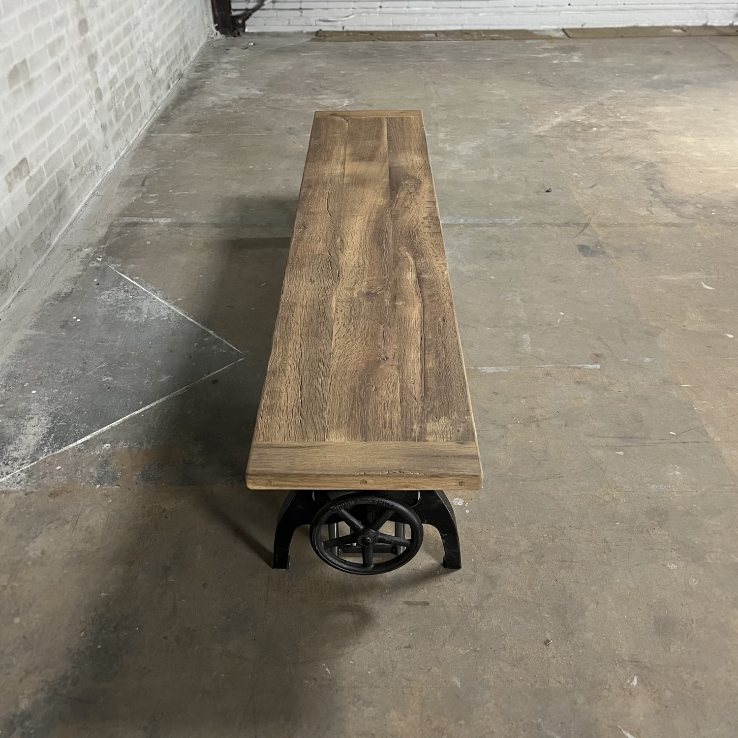 The seat is made of 4cm thick solid old oak that has served as cladding for years. As a result, the wood has been tinted by the sun and has acquired a beautiful patina. This dining room bench pairs well with our height-adjustable dining tables: Adjustable Tables. This can change the setting of an entire room in an instant.