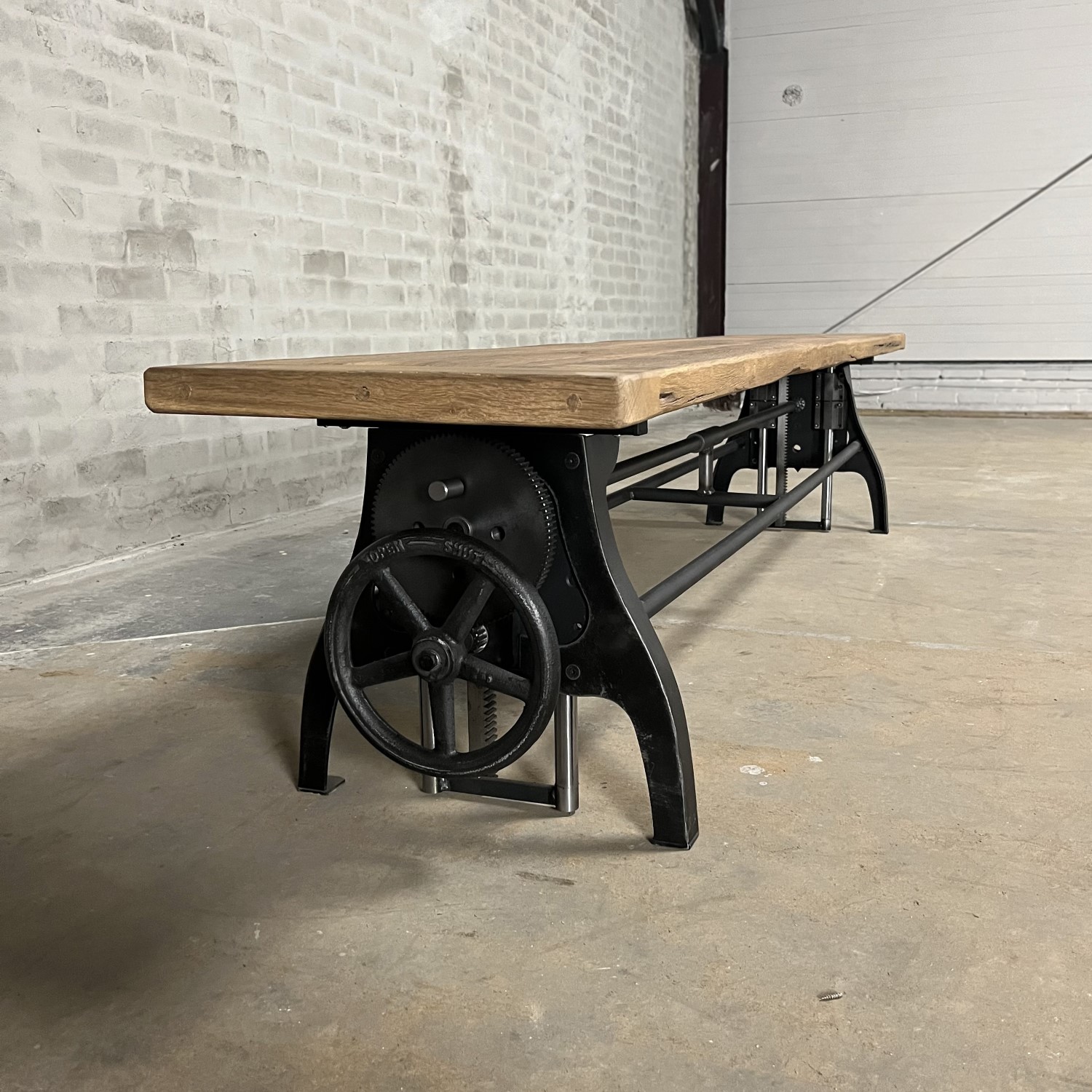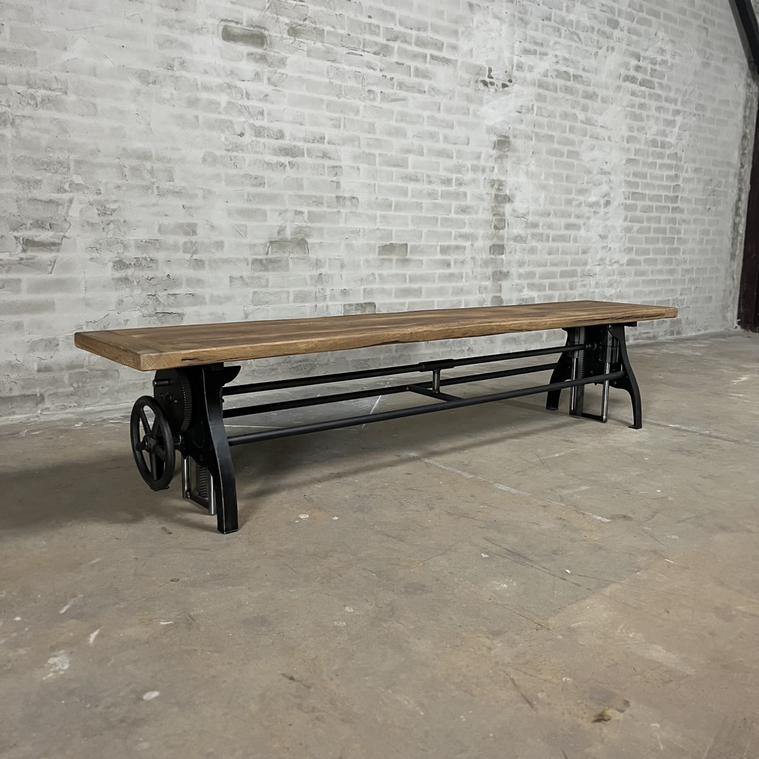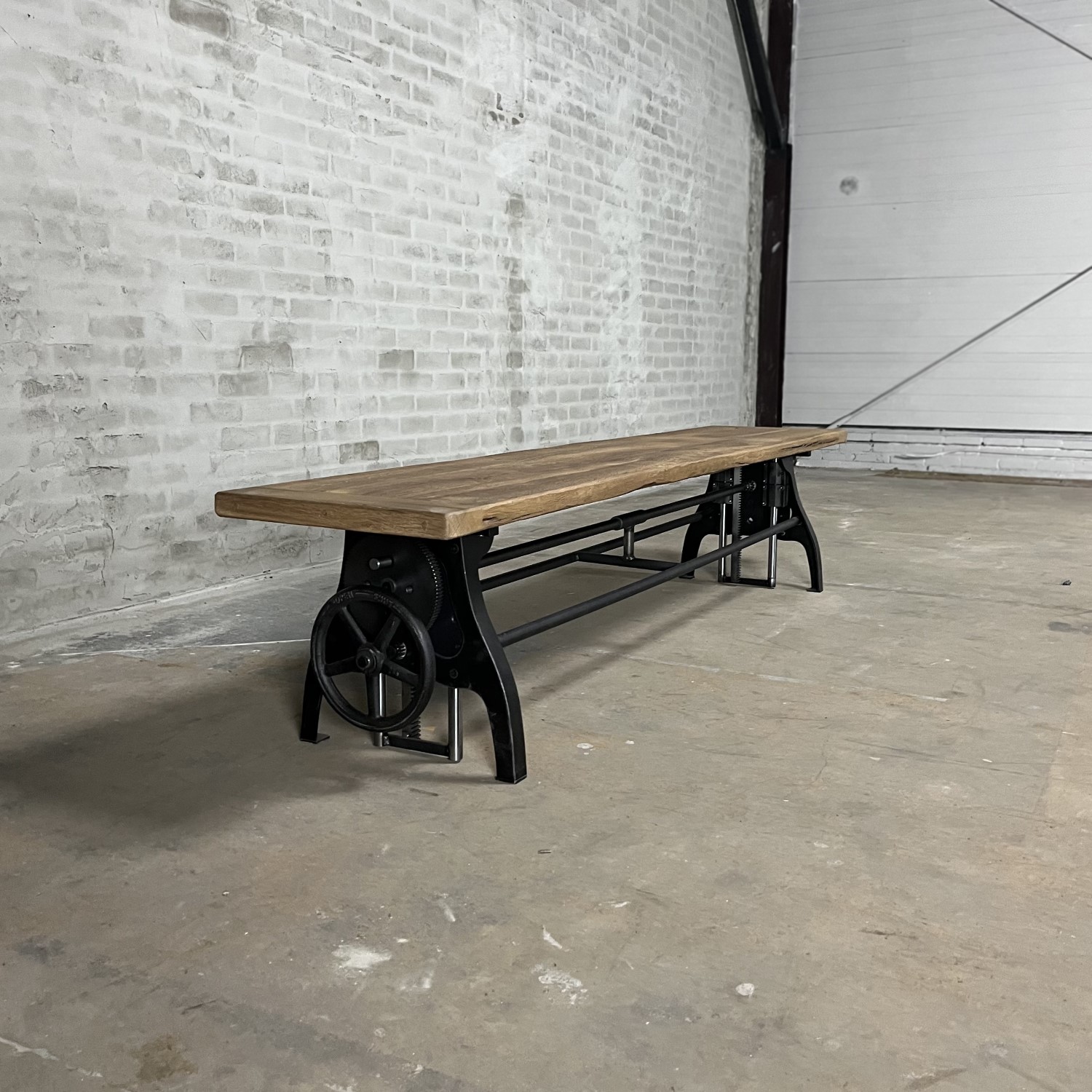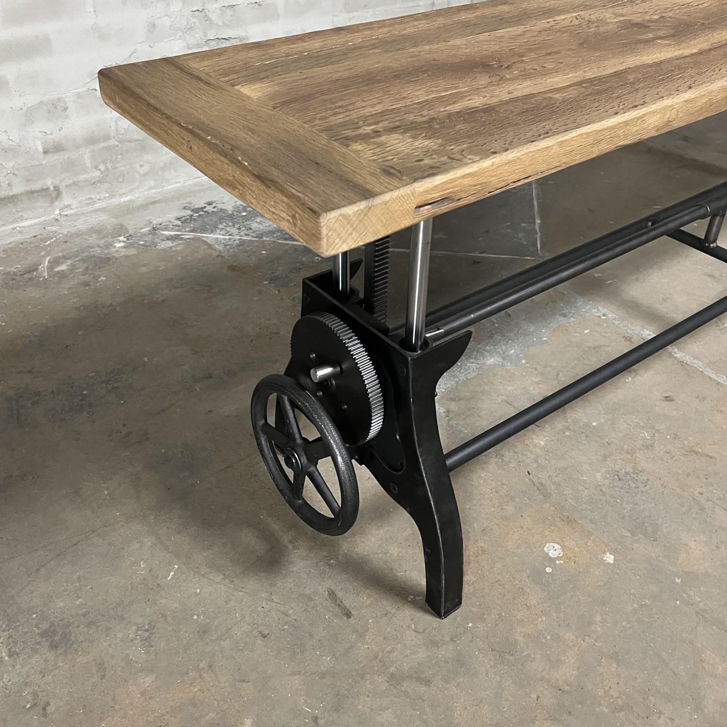 This industrial dining room bench is height-adjustable and custom-made in our own workshop.