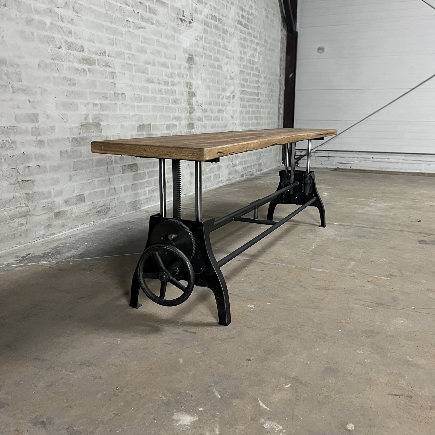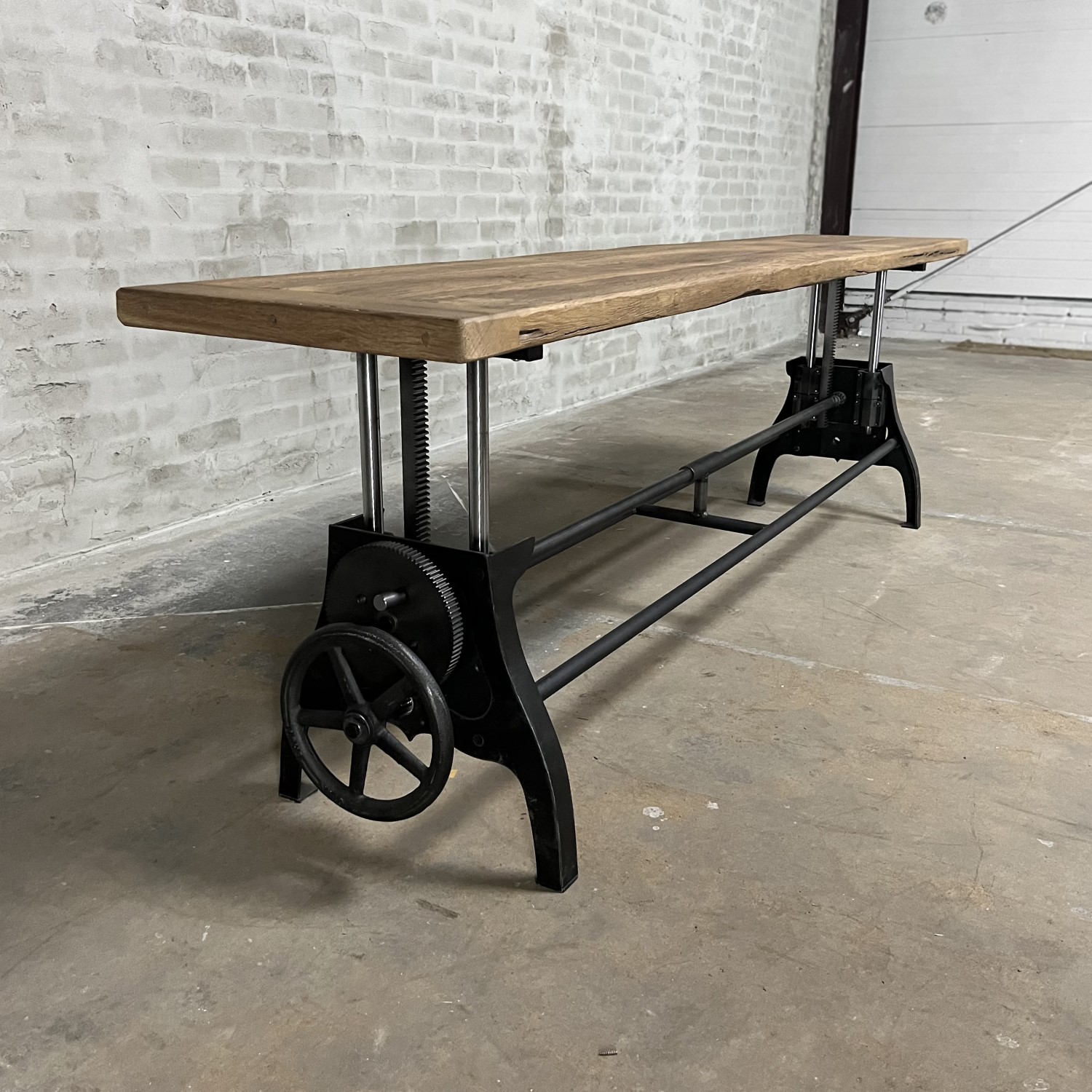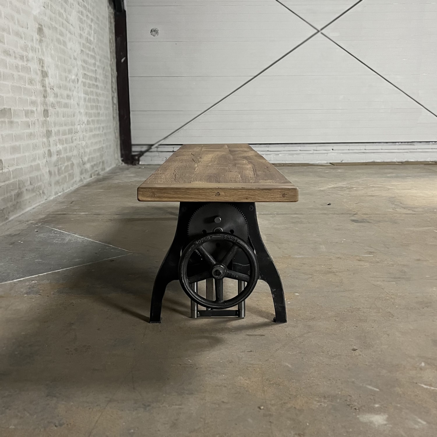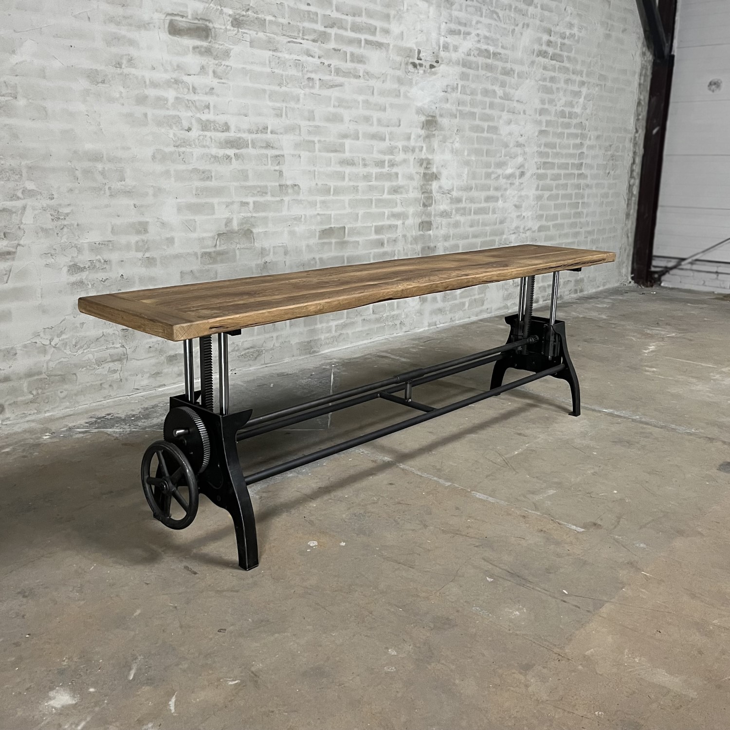 This industrial dining room bench is height-adjustable and custom-made in our own workshop.