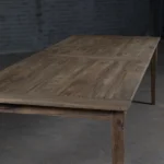 This French oak dining table is made in our workshop according to the authentic French farmhouse tables. The oak boards are from old houses and have been tinted by the sun for years. This has given them a beautiful patina.