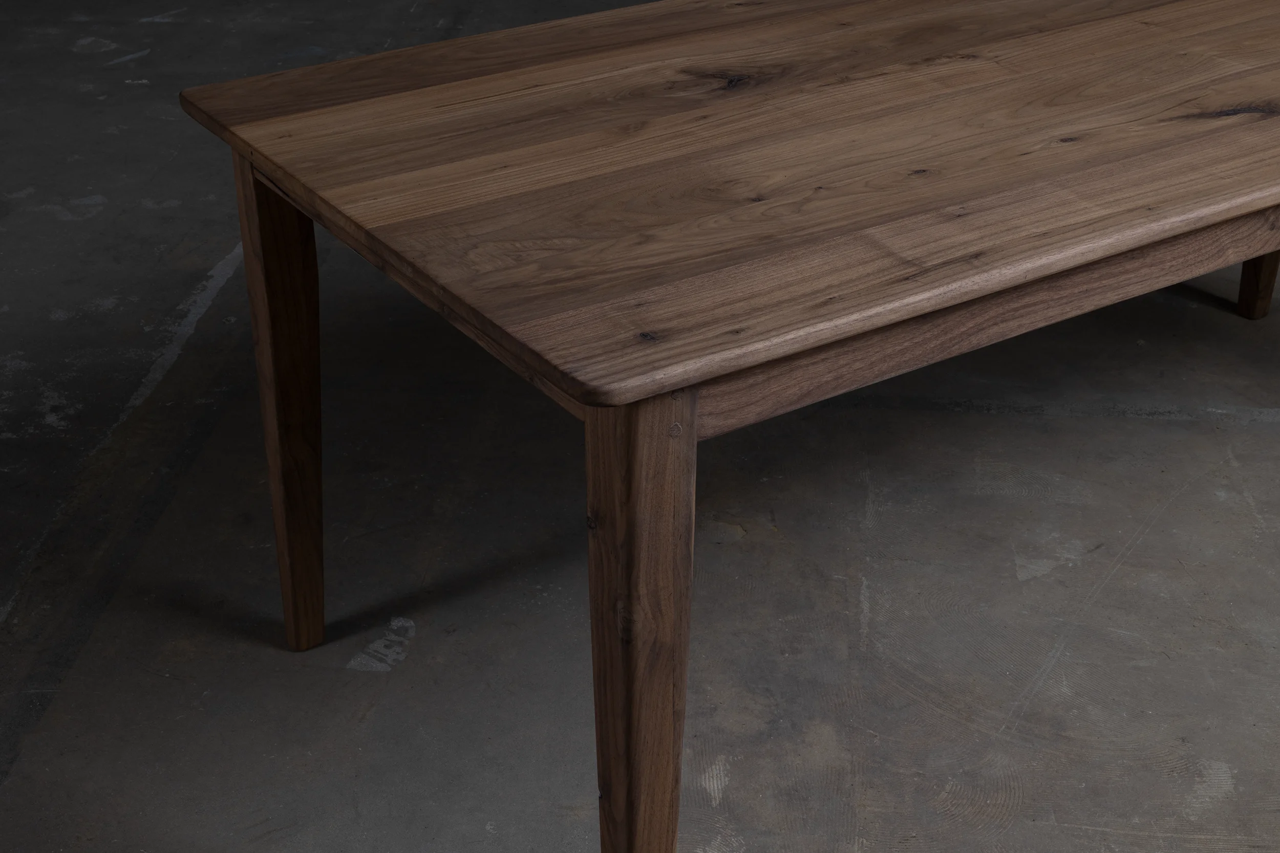This French walnut dining table “Elois” is made in our workshop based on the model of authentic French farmhouse tables. The table is made from solid walnut. Walnut is known for its luxurious appearance and beautiful colour variations.