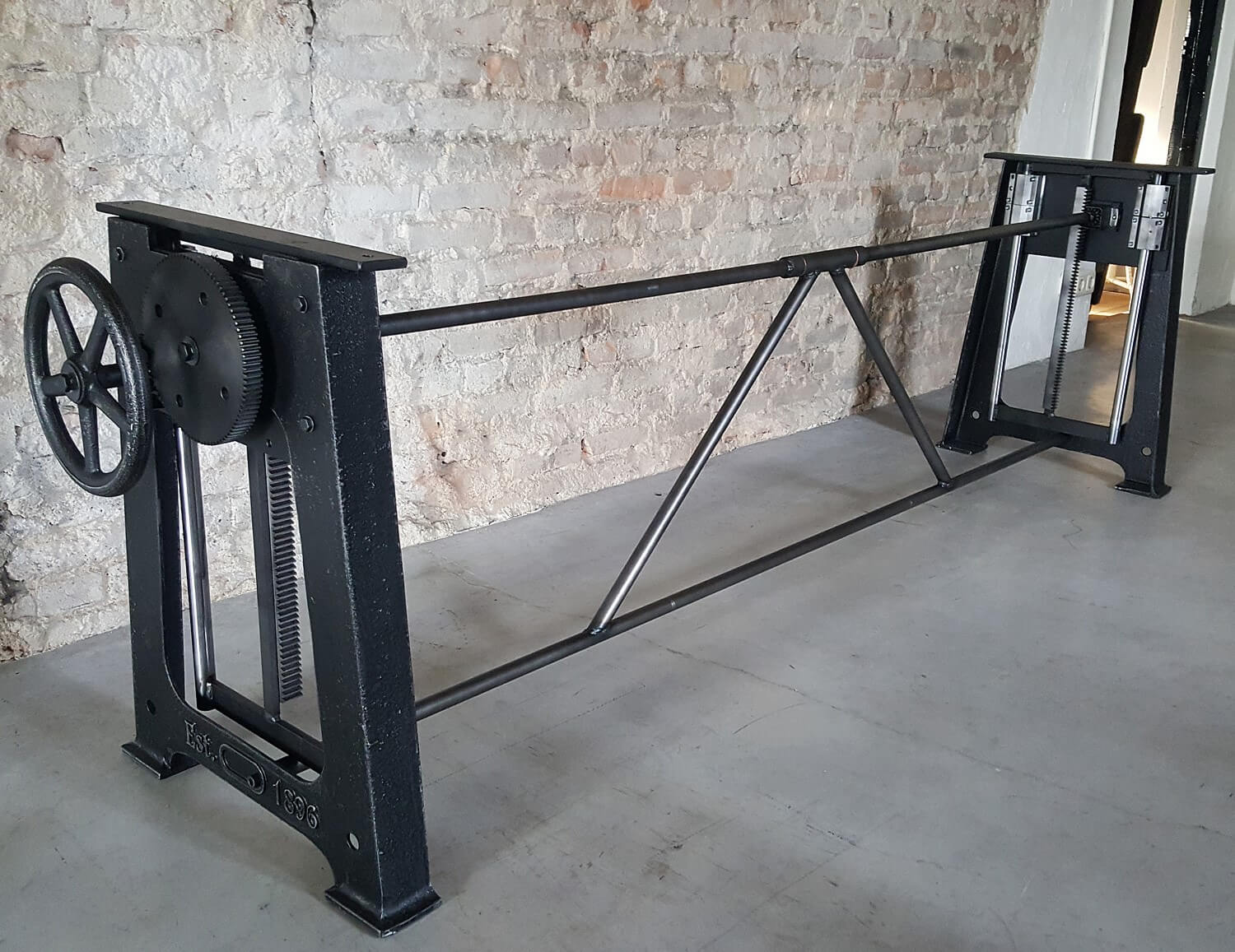 Bases up to L 250cm have a single gear. If a tabletop weighs more than 110kg, we advise an extra gear: 390,– pounds extra charge.
