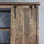 This Industrial cupboard is made in our own workshop from sunburned reclaimed oak wood in combination with steel sliding doors.