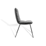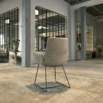 The Arva modern dining chair with armrest is equipped with airy seat cushions that deeply compress when you sit down. The way the cushions are attached to the chair, in combination with the thin steel frame, gives the chair a modern and elegant look.