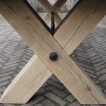 Industrial Oak dining table with cross-legs. The table legs named cross legs due to their distinctive x-shape and are connected with a drawbar. This further adds to the industrial look and feel of the table.