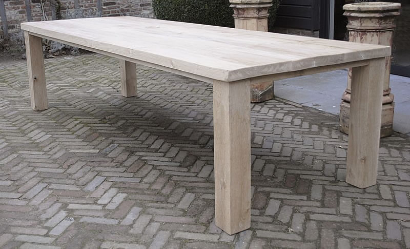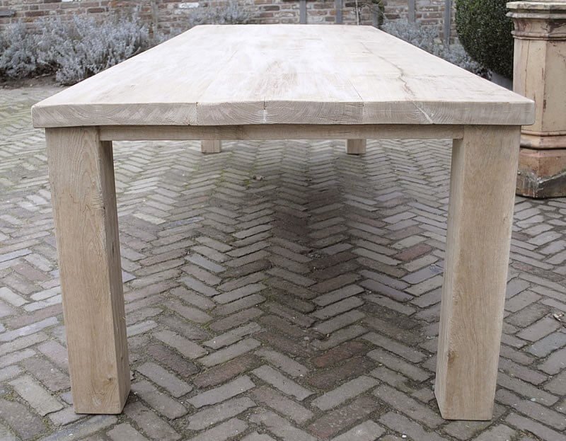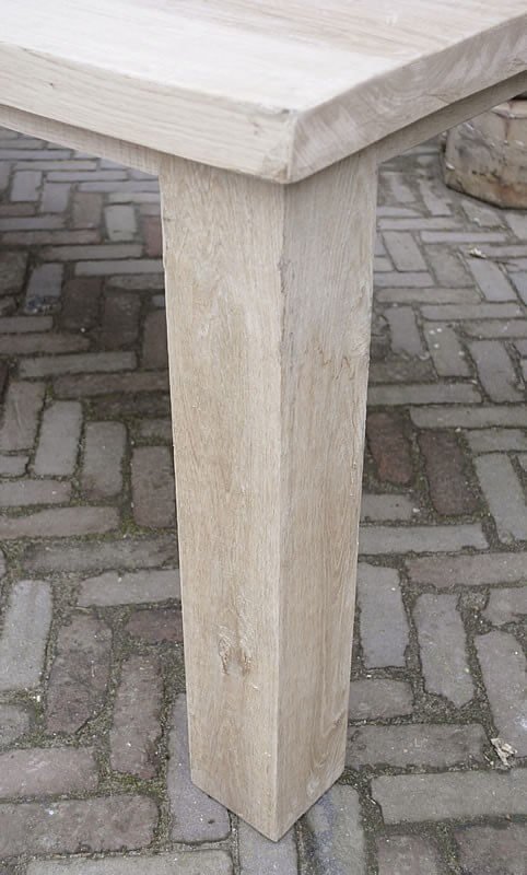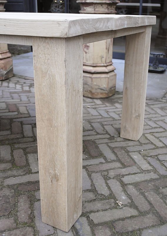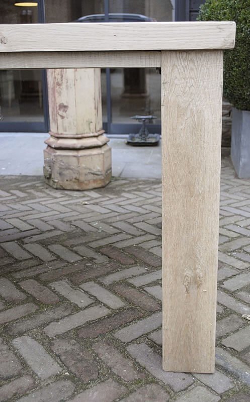 This rustic dinging table is designed by ourselves and handcrafted in our own workshop. The table top consists of atleast 6 planks of approximately 4.2 cm thick oakwood. The table legs are attatched on the outer ends of the table giving its distinctive rustic look.
