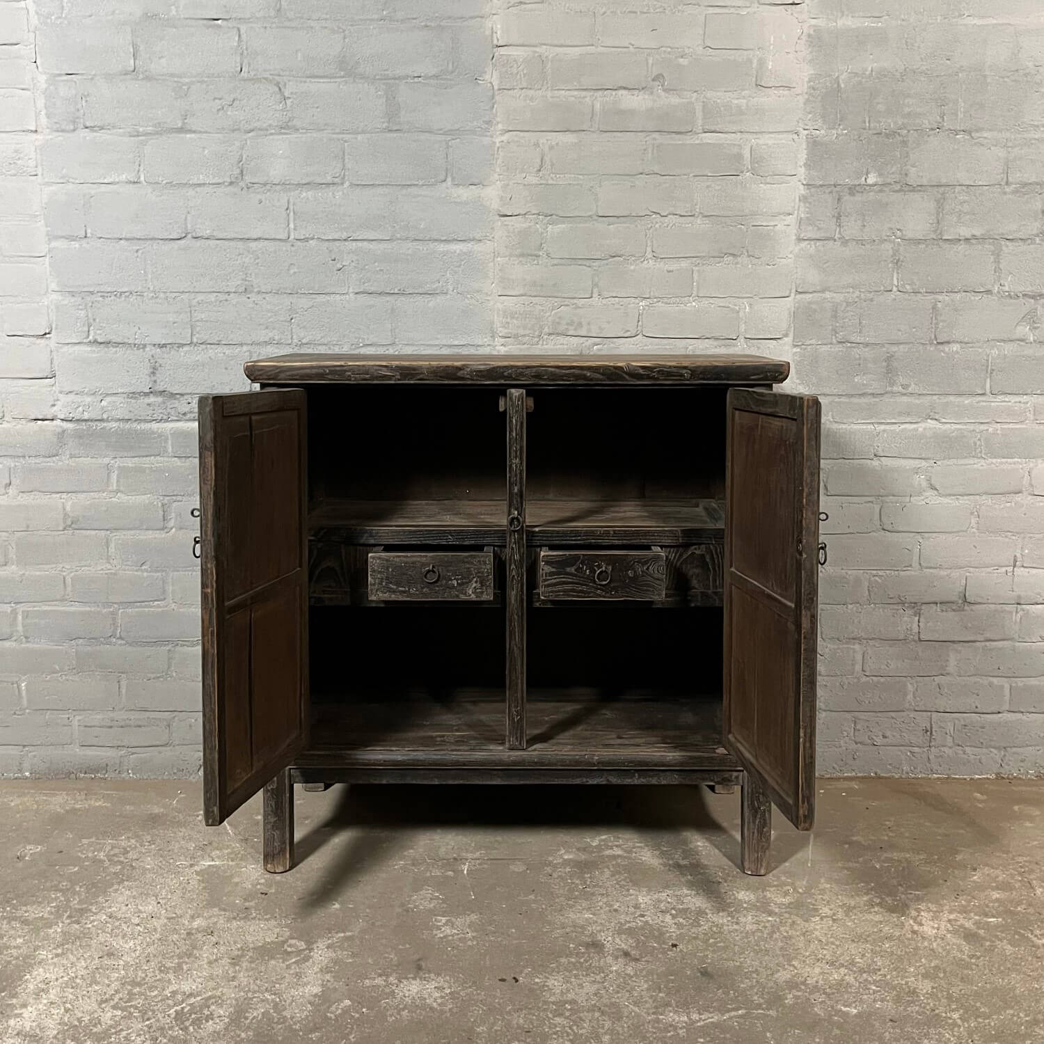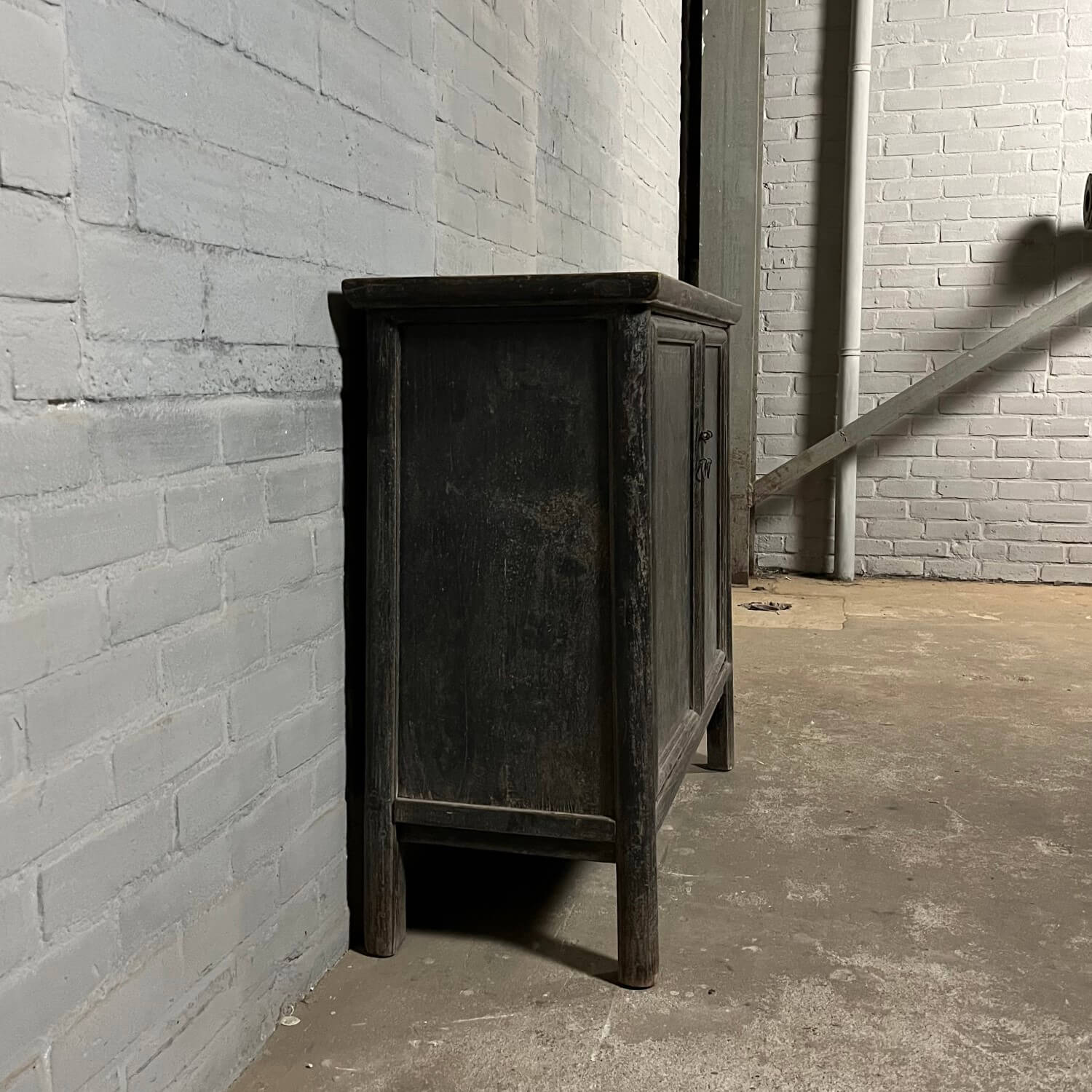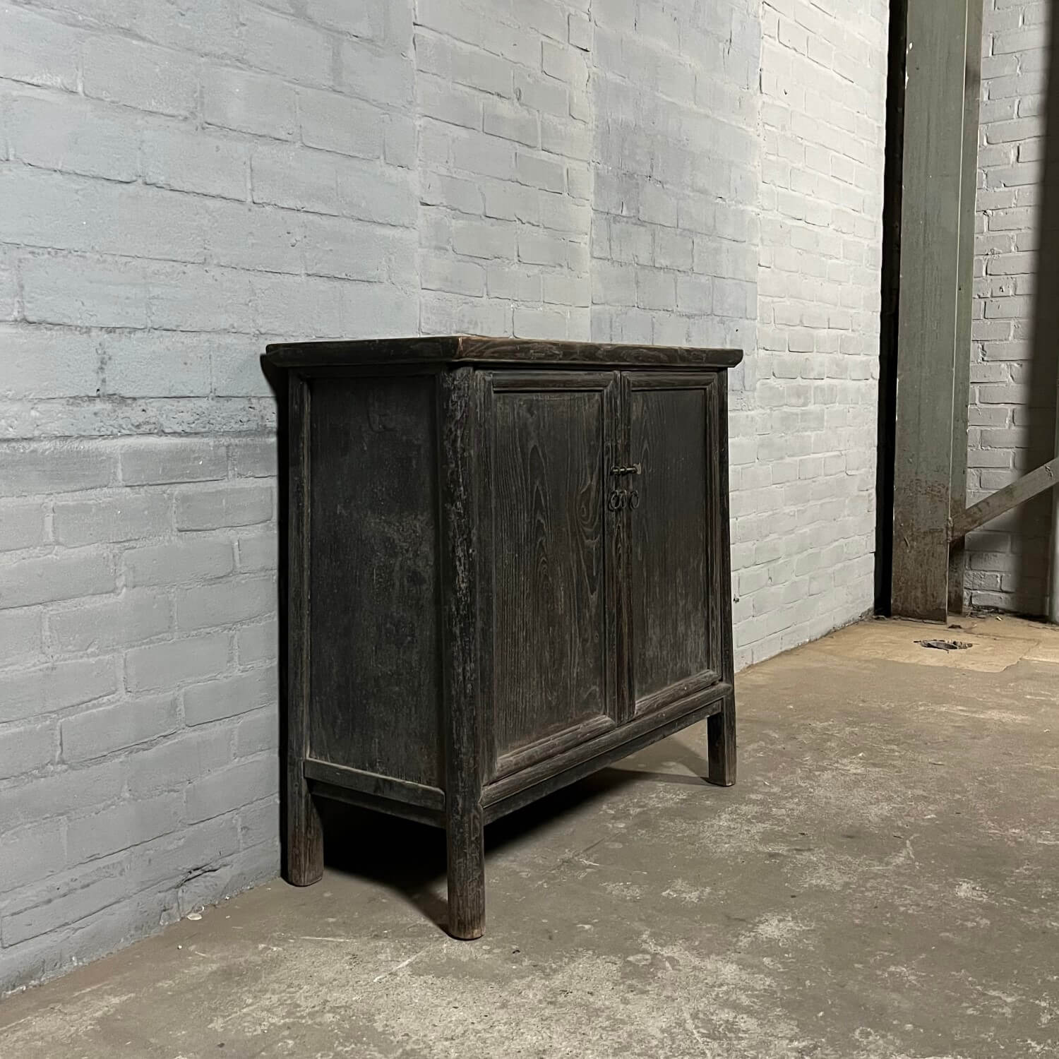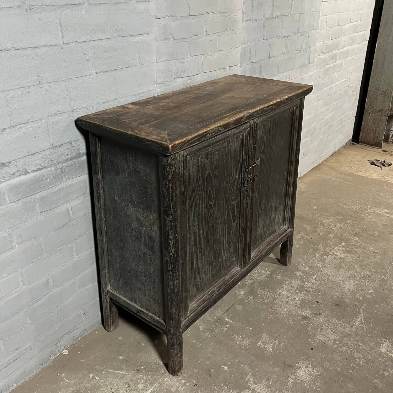 Old sideboard with 2 doors from China. The elm wood has a black patina.