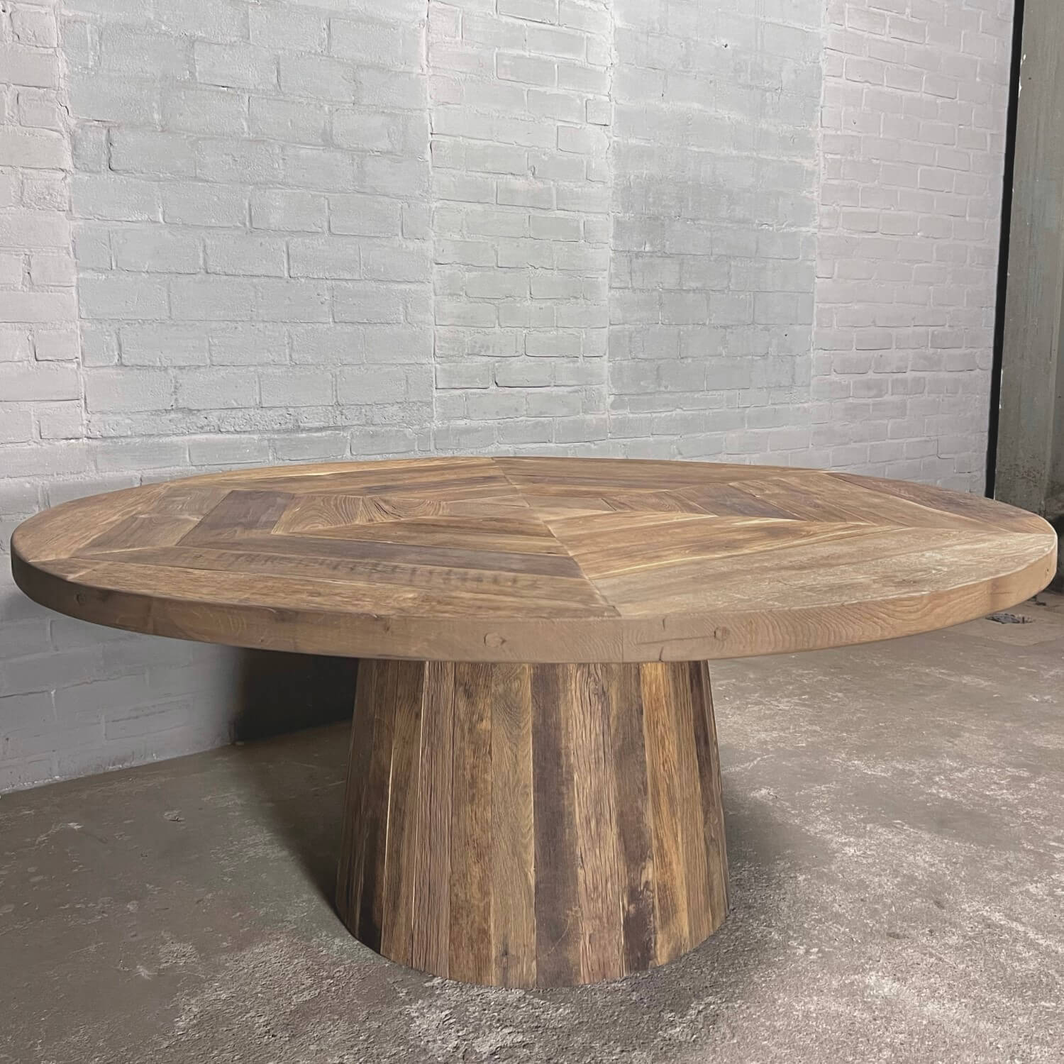 Our round dining table with conical table leg, rural and modern at the same time. Combining a modern shape with real old oak has created a striking and stylish table. In this way, it fits nicely with contemporary interiors, where different styles are increasingly combined.