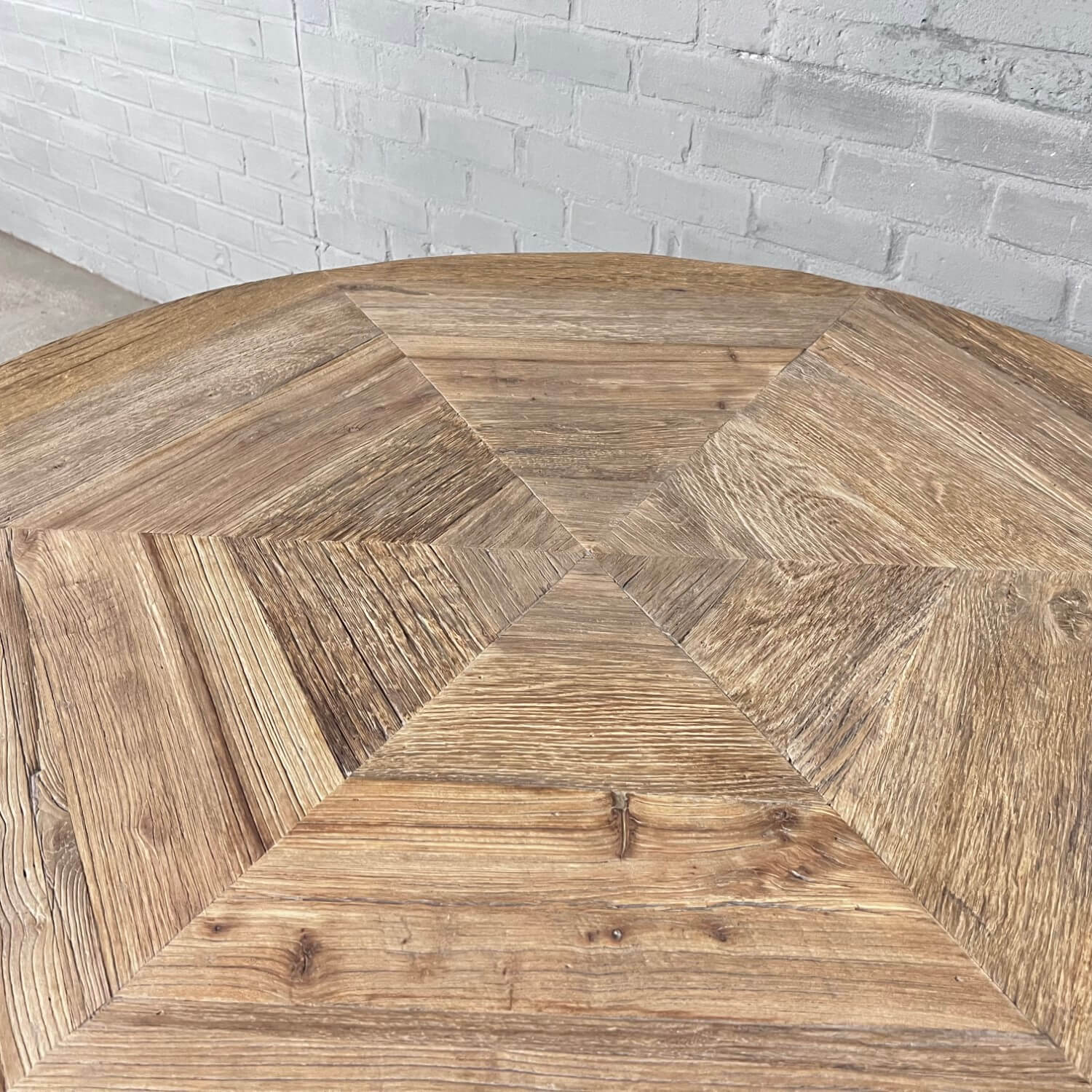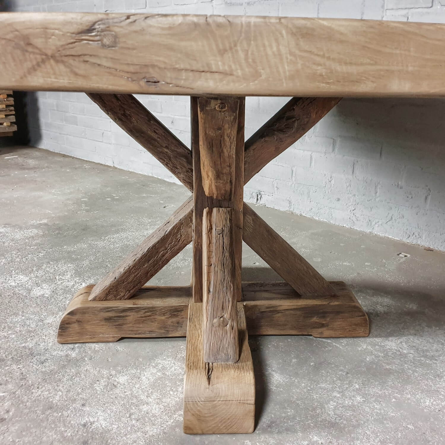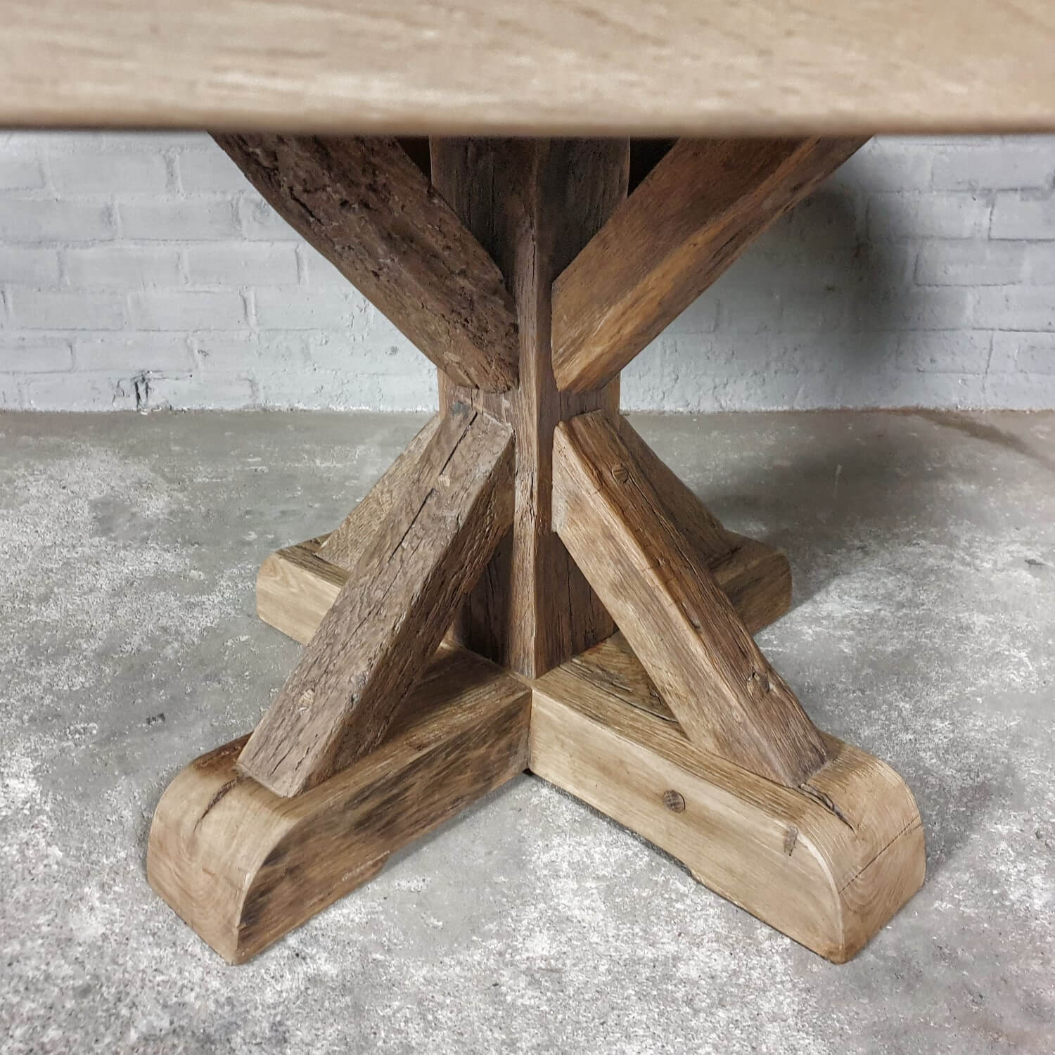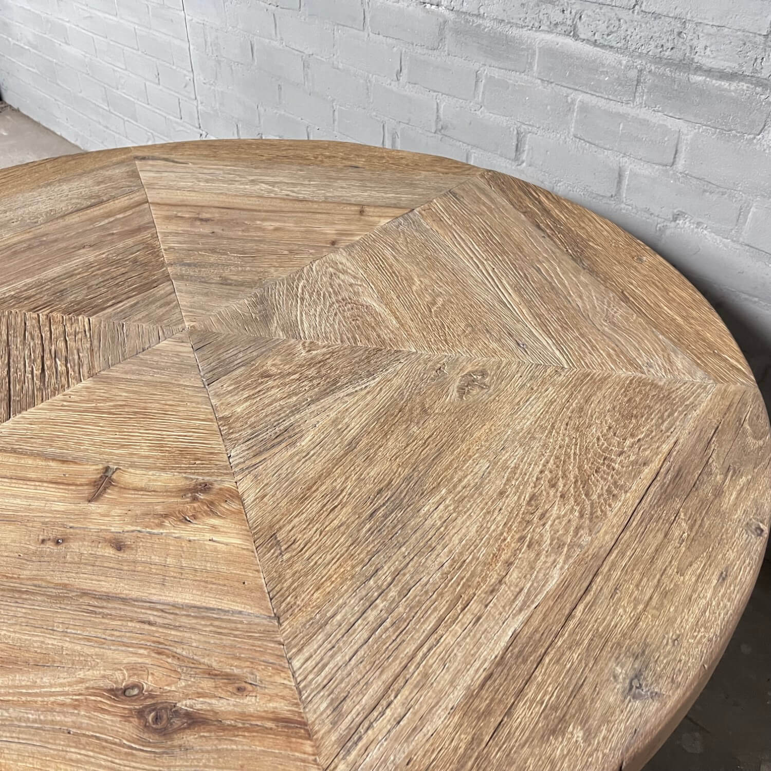 This round reclaimed oak Refectory table “Basel” is designed by ourselves and is made in our own workshop.
