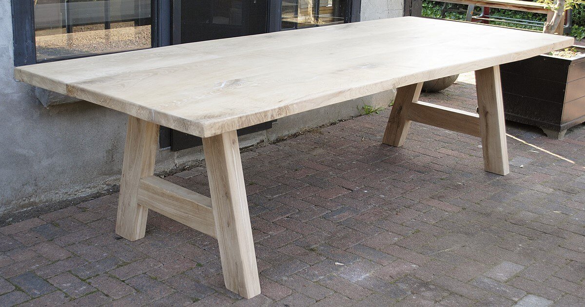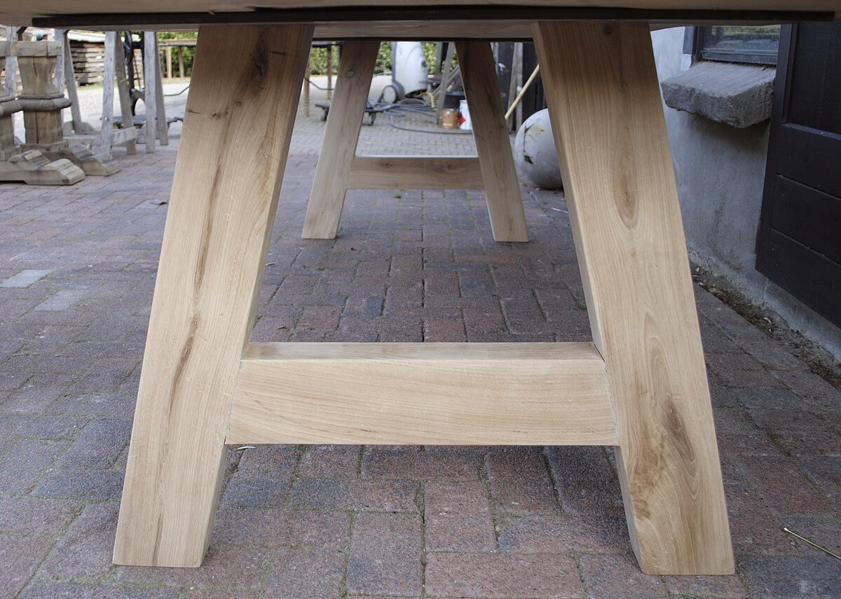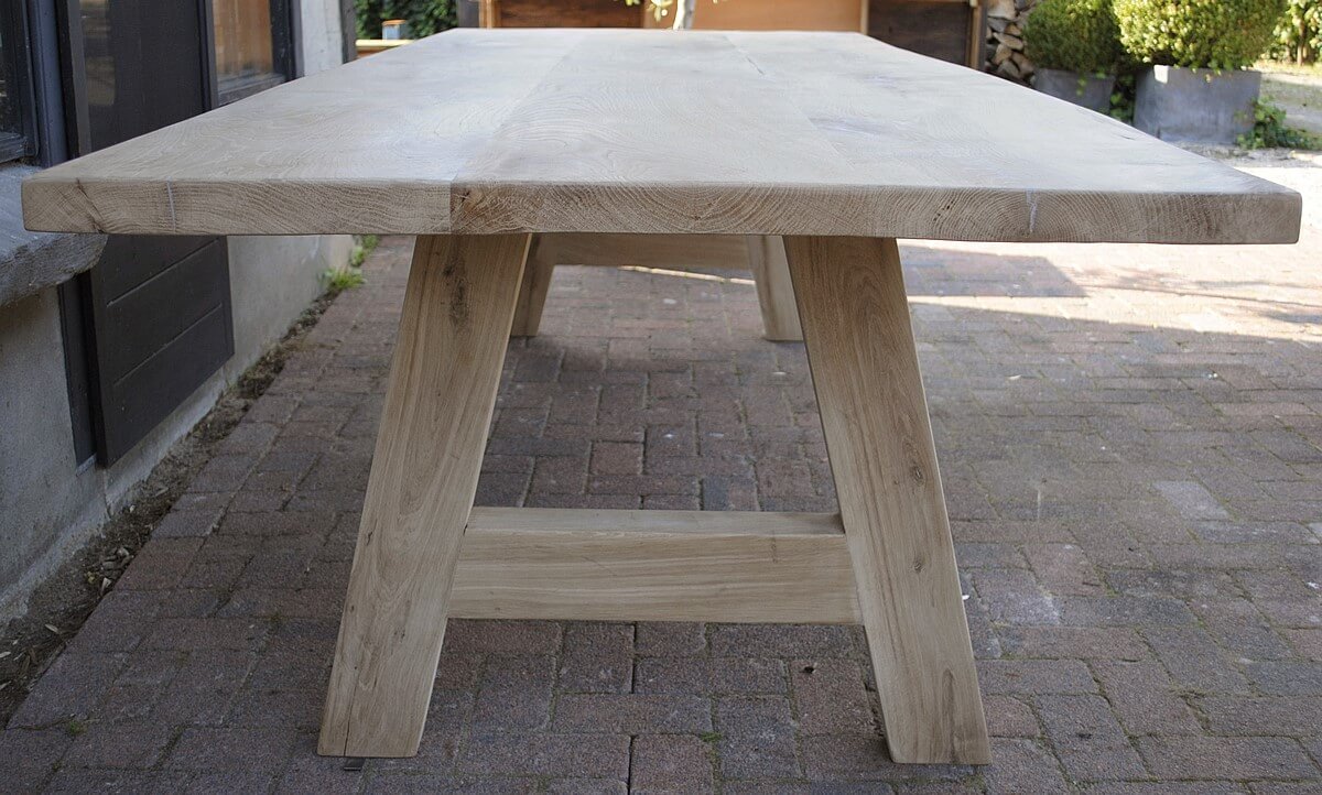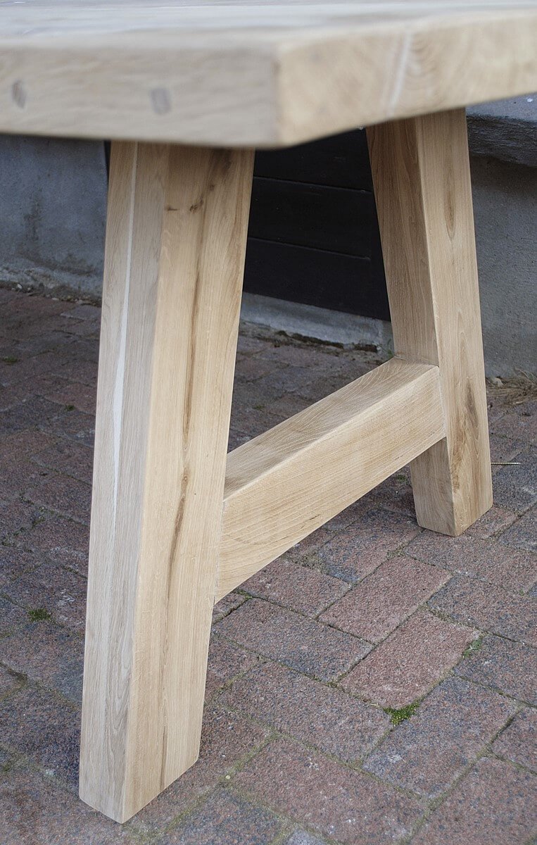 This rustic dinging table in Scandinavian style is designed by ourselves and handcrafted in our own workshop. The table top consists of atleast 6 planks of approximately 4.5 cm thick oakwood. The table legs are made in an A-shape providing the table with stability and style.