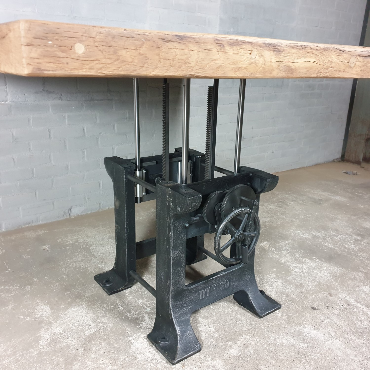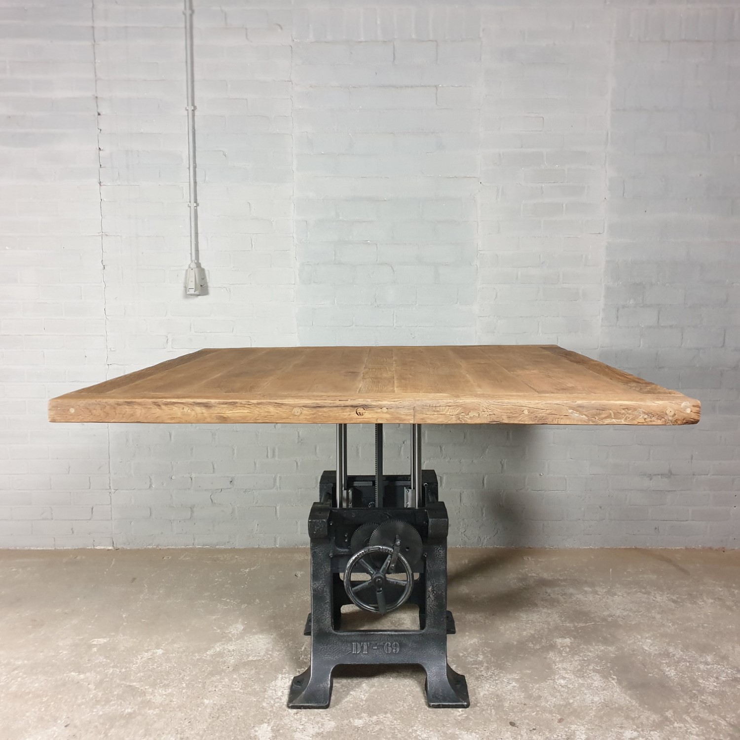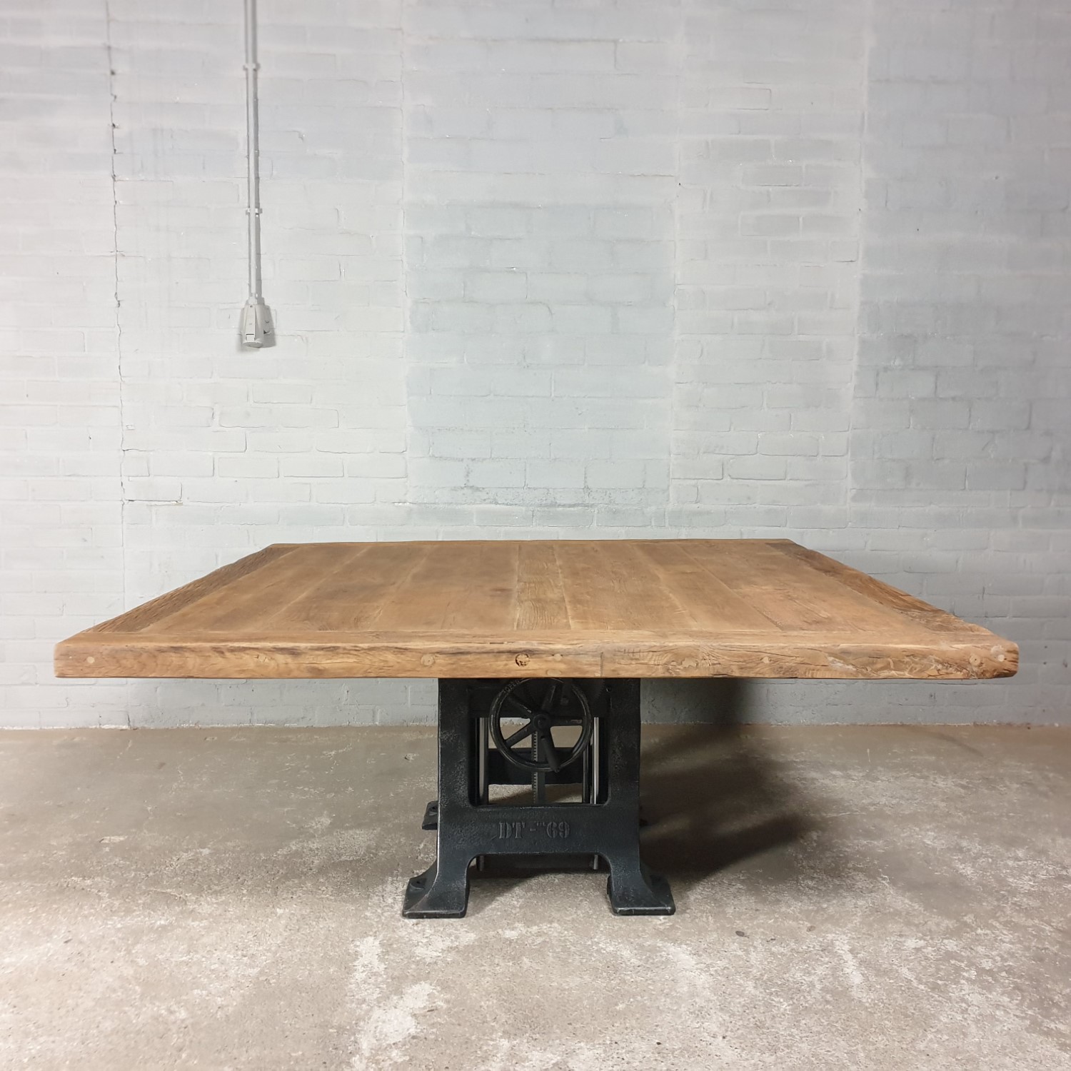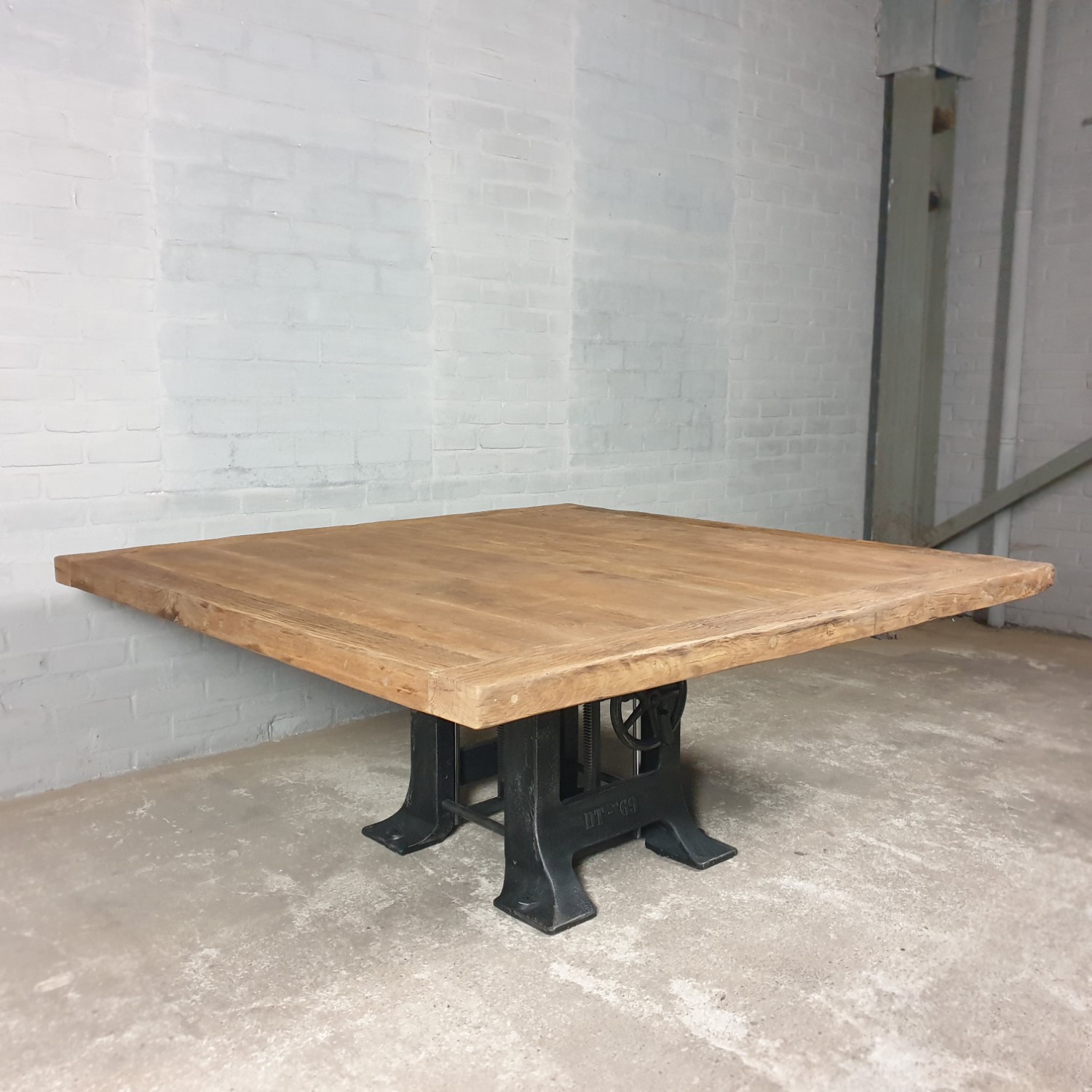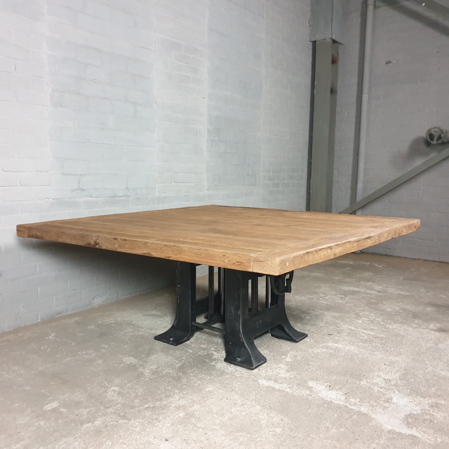 This square height-adjustable table is made with a set of heavy cast-iron legs, adjustable from 76cm to 115cm high. Use it as a homely dining room table, or transform it into a stylish bar table for a lively and inviting atmosphere. Adjust the height to suit your needs and create the perfect setting for every moment.
