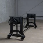 Bases up to L 250cm have a single gear. If a tabletop weighs more than 110kg, we advise an extra gear: 390,– pounds extra charge.
