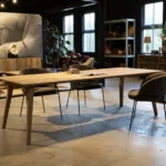 Because of its modern and Scandinavian look, the Nordic table combines well with our Maverick chairs. This can be seen in the last photos in the gallery.