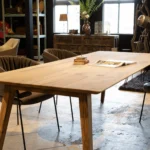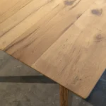 Scandinavian dining table Nordic in Retro style is handcrafted in our own workshop from reclaimed old oak wood. This tables design is inspired by the 60s, which is reflected in the striking shape and color of the table. This way the style of that time is combined with contemporary Scandinavian minimalism. The ‘Nordic’ table is with its stylish appearance Retro with a new look!