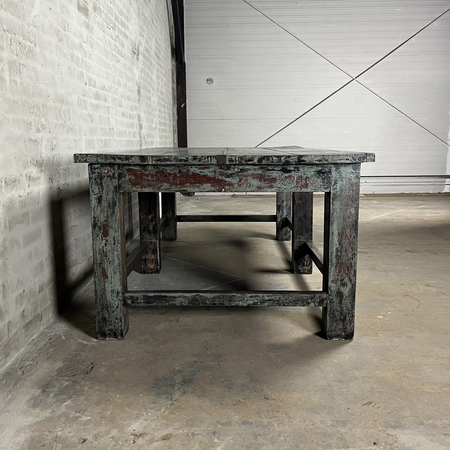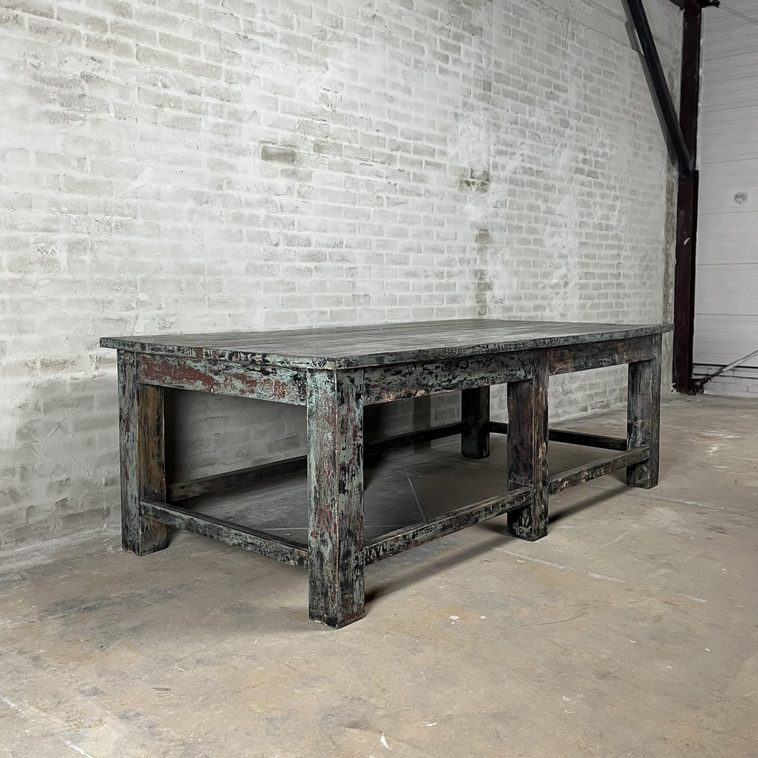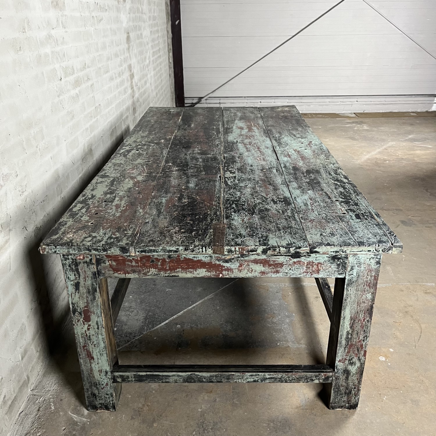 This large vintage workbench is a real eye-catcher that is ideal for displaying nice things.