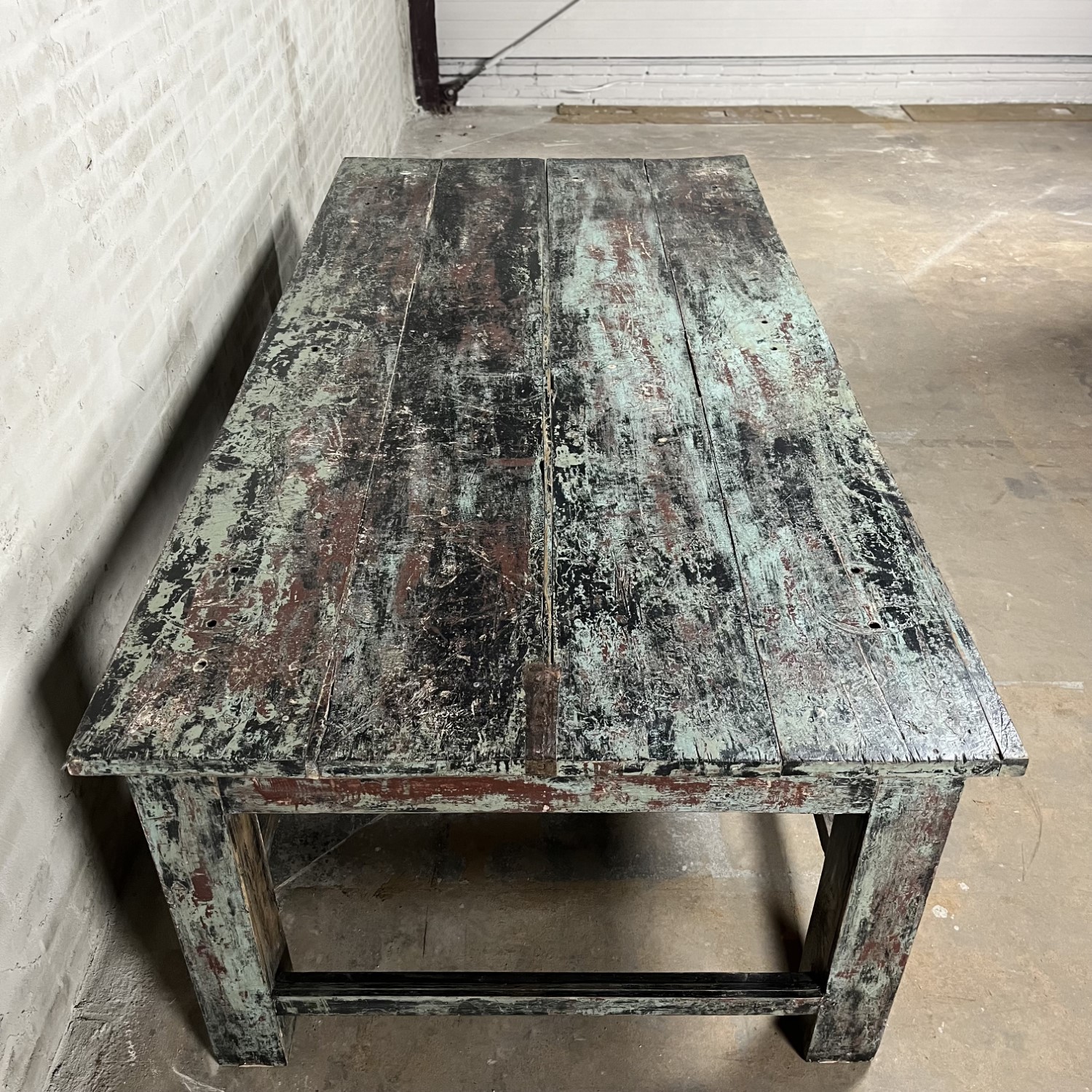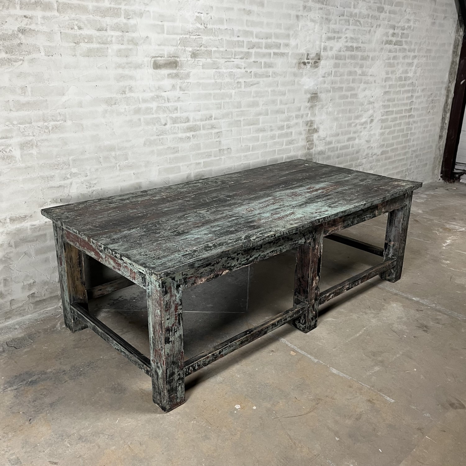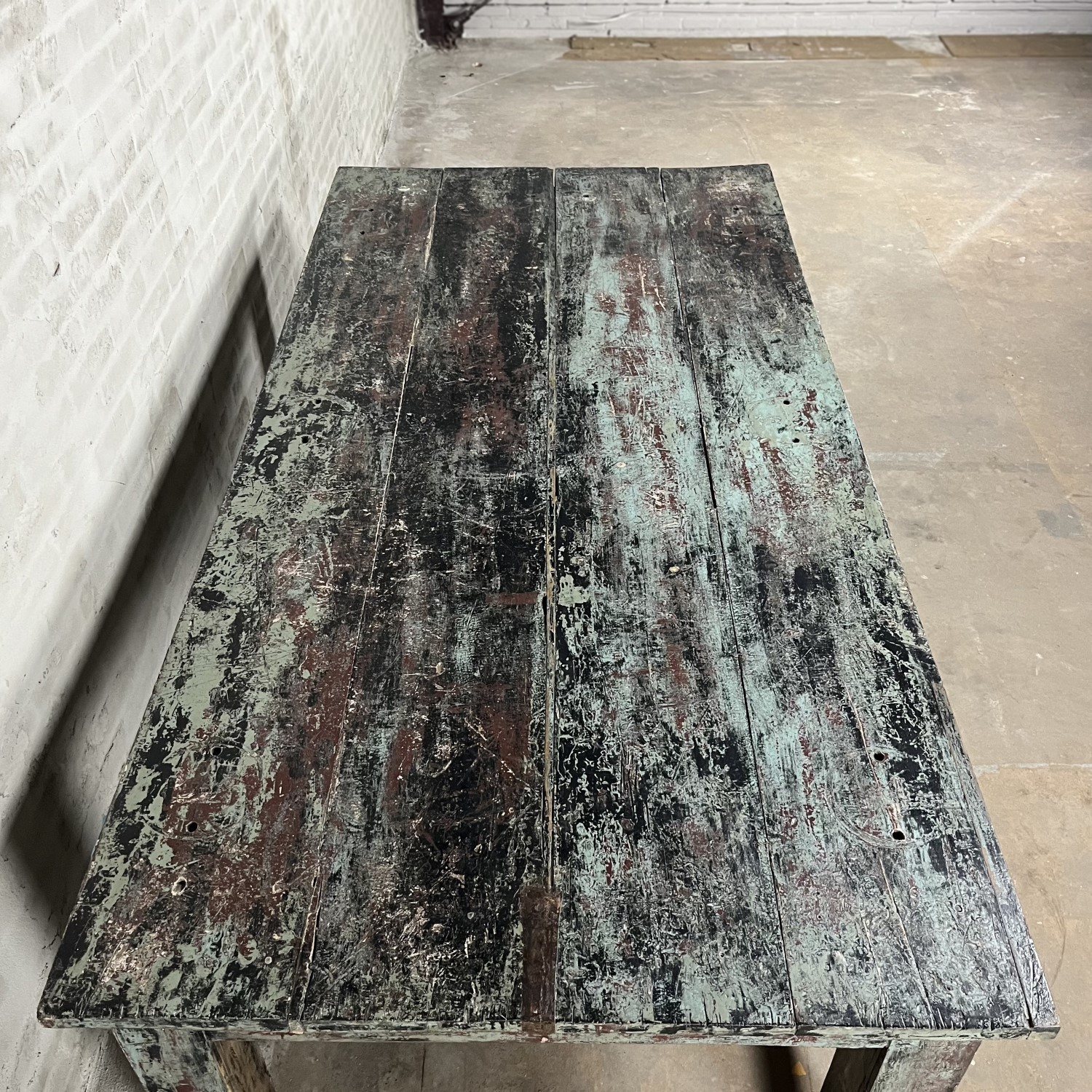 This large vintage workbench is a real eye-catcher that is ideal for displaying nice things.